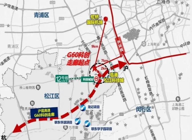 •地铁9号线九亭站(3公里),地铁12号线延伸段“科技园站”(1.5公里)