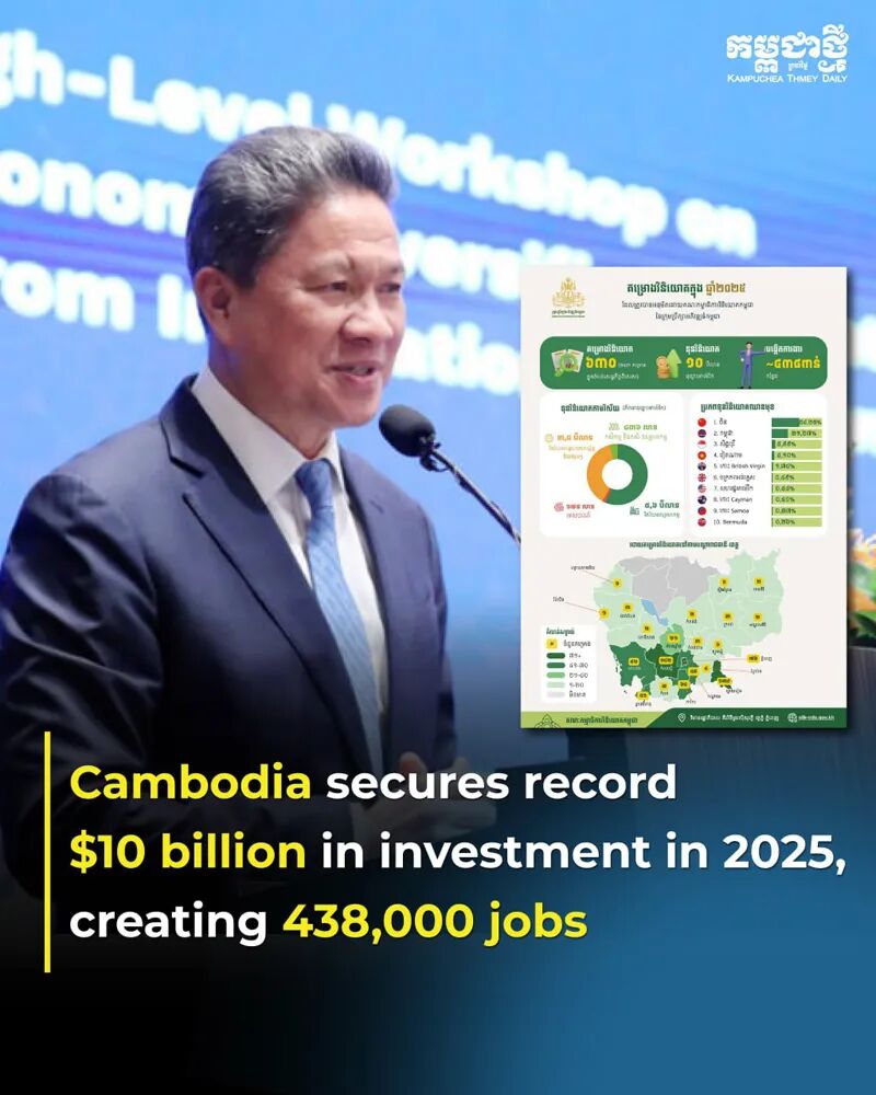 柬埔寨发展委员会(CDC) 2 月 5 日发布新闻稿称,2025 年该国已批准 630 个固定资产投资项目,总投资额达 100 亿美元,同比增长 45%。