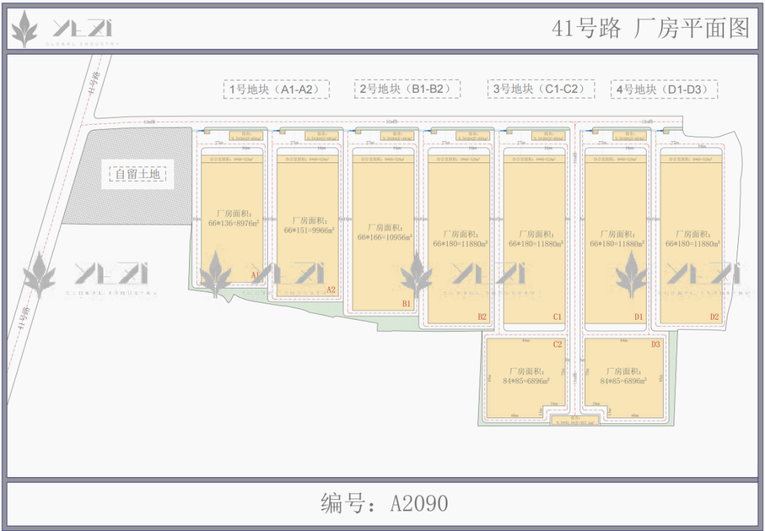 位置:41号路A1厂房面积:8976㎡ A2厂房面积:9966㎡