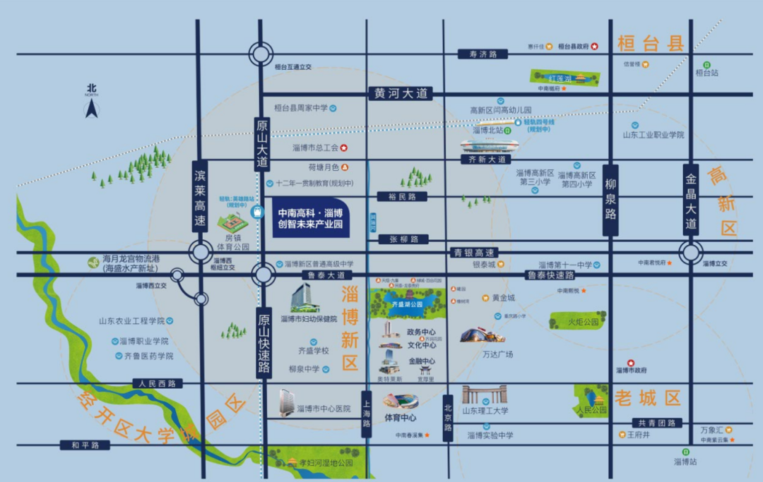 紧邻淄博西枢纽立交,快速接驳济青高速、滨莱高速、原山大道快速路等城市干线。距淄博高铁北站直线距离仅5公里,轻松实现30分钟抵济南、40分钟达青岛、2小时通北京的高效商务圈,为原材料运输与产品流通提供极致便利。